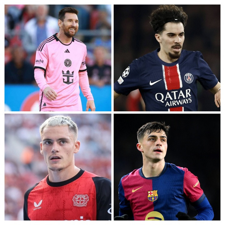 居莱尔(皇马)、B费(曼联)、帕尔默(切尔西)、维尔茨(勒沃库森/利物浦)、贝林厄姆(皇马)、德布劳内(曼城/那不勒斯)、亚马尔(巴萨)、厄德高(阿森纳)、佩德里(巴萨)、维蒂尼亚(巴黎)、梅西(迈阿密国际)、J罗(莱昂)、旗手怜央(凯尔特人)、库杜斯(西汉姆/热刺)、蒂尔曼(埃因霍温/勒沃库森)